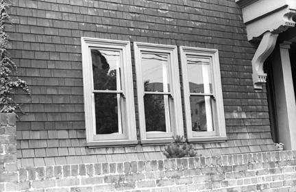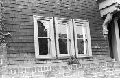 Three windows, shingles on wall