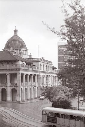 Close up view Star Ferry building Kowloon, view from Star Ferry in Hong Kong harbor