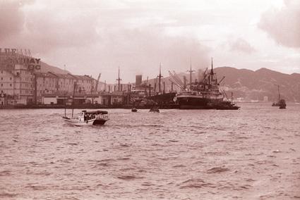 Star Ferry building Kowloon, view from Star Ferry in Hong Kong Harbor