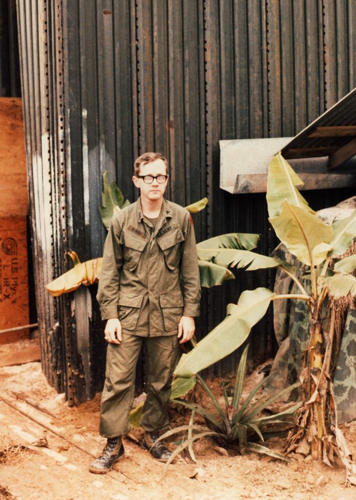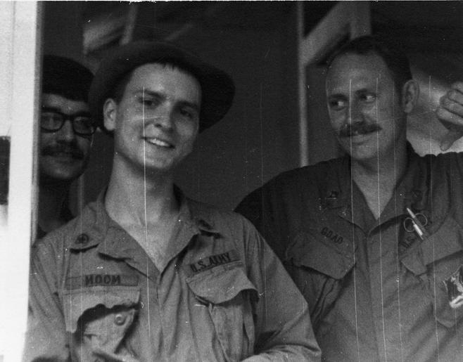 Captain James B. Evans, PSP clad medical bunker in background 1/77 Armored Battalion, Quang Tri