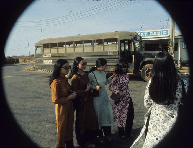 Filipino ex patriots waiting for departing flight at Chu Lai air terminal.