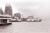 Arriving Star Ferry dock, Victoria Island, 'Rolex' sign in center.