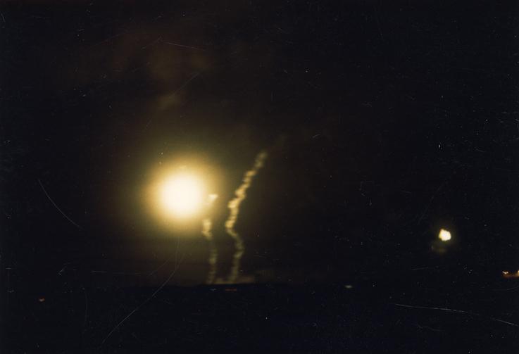 Illumination flares over Quang Tri Combat Base. View from 1/77 Armored Battalion aid station.