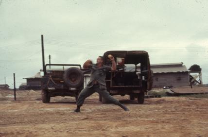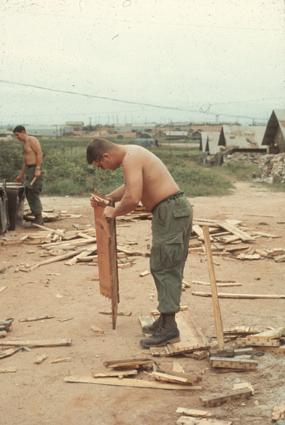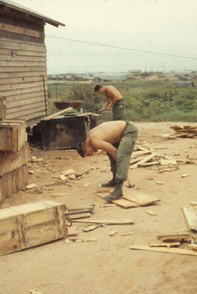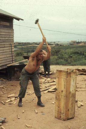 Dunklin chopping up ammo boxes by 1/77 Officers Club