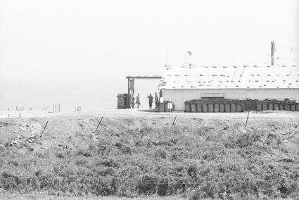 Military base - View from the front door of my hootch. At left is community John. Fortunately, I had indoor plumbing