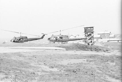 View of 91st Evac Hospital Dust Off helipad and trauma center