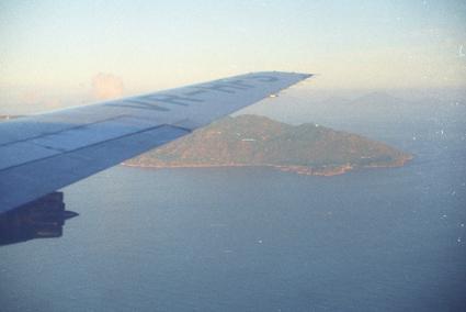 Photo from inside of airplane - Hong Kong R&R. View of approach to airport.