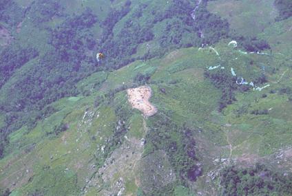 Aerial view of abandoned hilltop support base en route to Tra Bong.