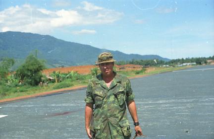 Tech. Sergeant Jim Raines (United States Air Force) at Tra Bong airstrip inspection.