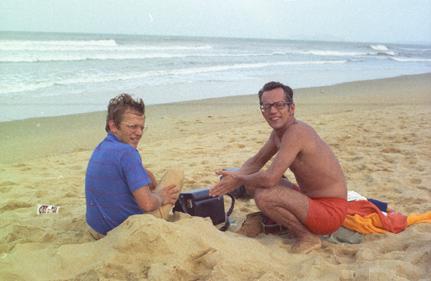 Don Kilgore and Dick McKegney having a beer in a ville near Chu Lai, Vietnam.