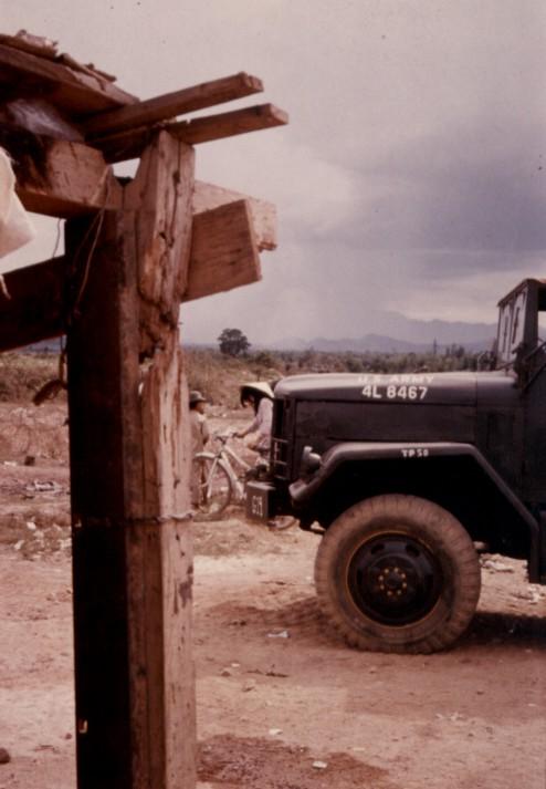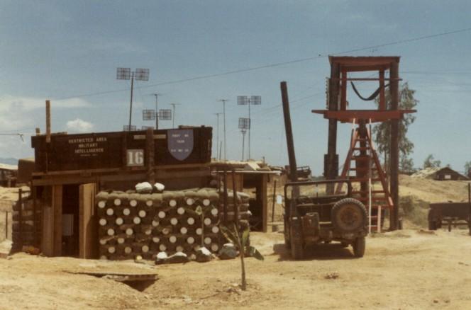 military intelligence building, jeep parked in front.