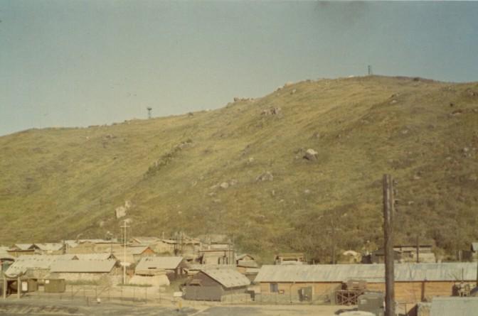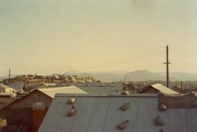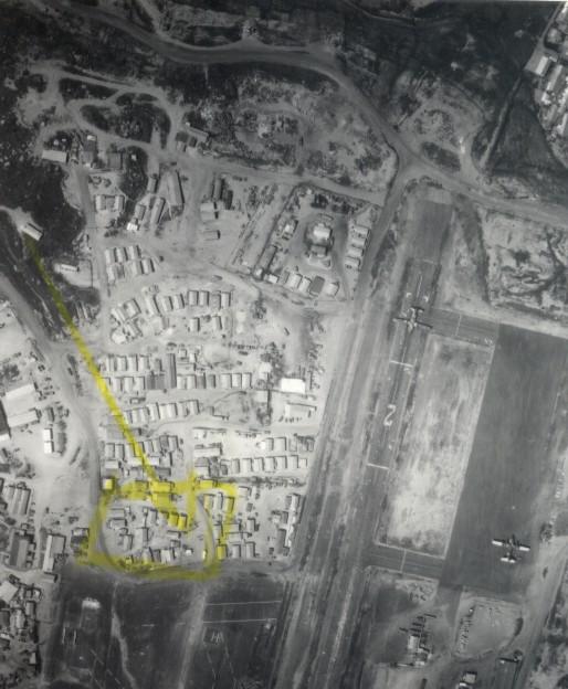 top view of hootch, sand bag on top of roof.
