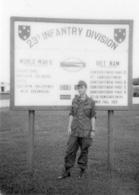 Soldier standing in front of the 23rd Infantry Division Sign.