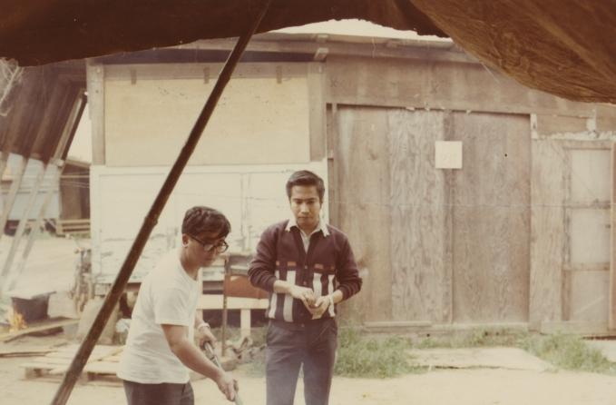Col. Kenwyn Nelson (on right), 91st Evac Hospital Commander, at Tam Ky compound for TET party.