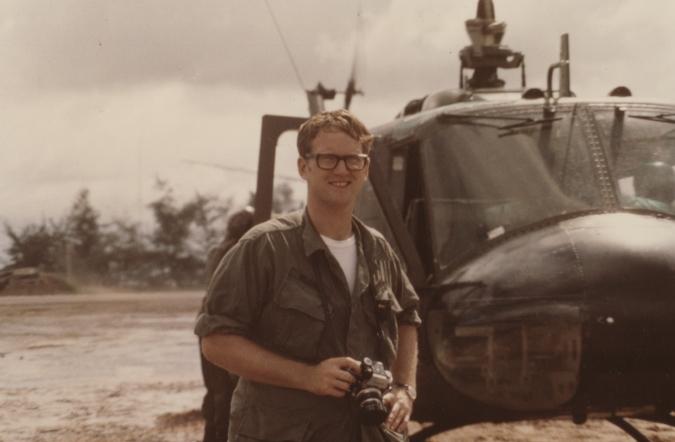 Kilgore standing next to helicopter