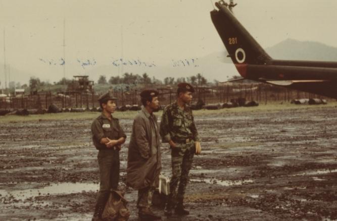 Don Kilgore at Quang Ngai airstrip for refueling stop.