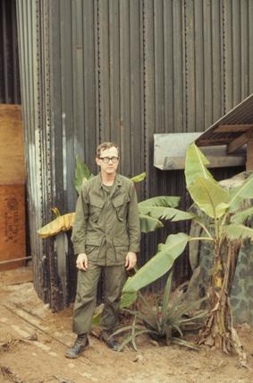 Captain William N. [Bill] Elkins, Jr., physician at 3rd Field Hospital, Saigon. Photograph taken in his billet.