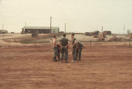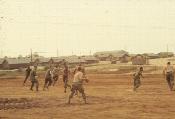 Touch football, Quang Tri Combat Base. Building on right horizon is 1/77 Armored Battalion motor pool.