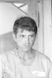 Dr. Tim Stuntz, neurosurgeon, 91st Evacuation Hospital, on Boys Camp deck, 91st Evacuation Hospital.