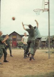 Boys Camp deck, 91st Evacuation Hospital, Chu Lai. Steve Morse, radiologist, on left, and Colonel Jack Tendler, right.