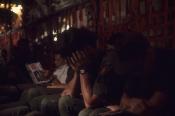 Man stretched out on plank, view from Star Ferry, Victoria Islandby Hong Kong Yahmati Ferry.