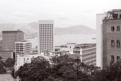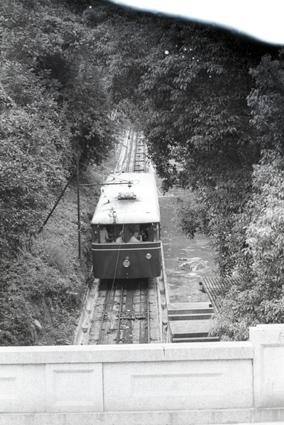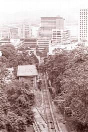 Funicular Victoria Island, view along funicular pathway toward Hong Kong Harbor.