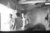 Doctors on Boys Camp deck, 91st Evacuation Hospital. Standing on right, Dr. McMartin, internist.