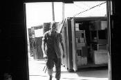 Medic George Reinhardt at side entrance Emergency Room, 91st Evacuation Hospital