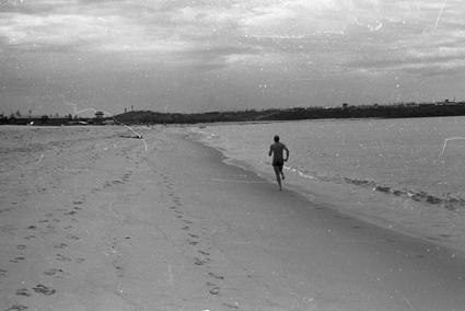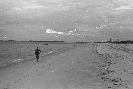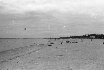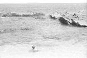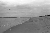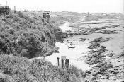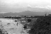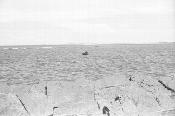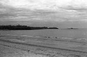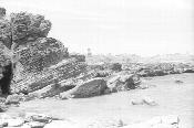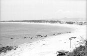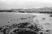 View from mess hall or officers club toward reefs and rocky shore line north of 91st Evacuation Hospital. Boys Camp on left.