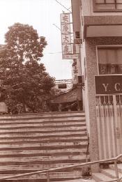 Medic Johnson, 1/77 Armored Battalion Building in background 1/77 Officers Club