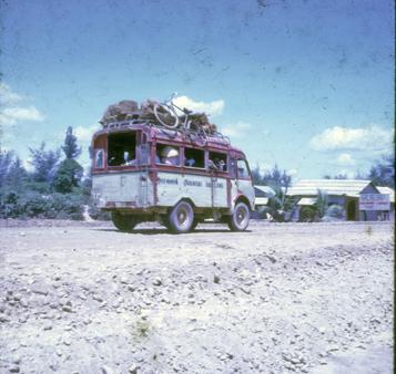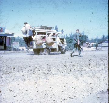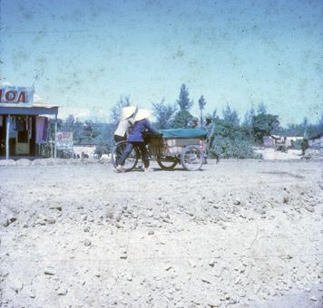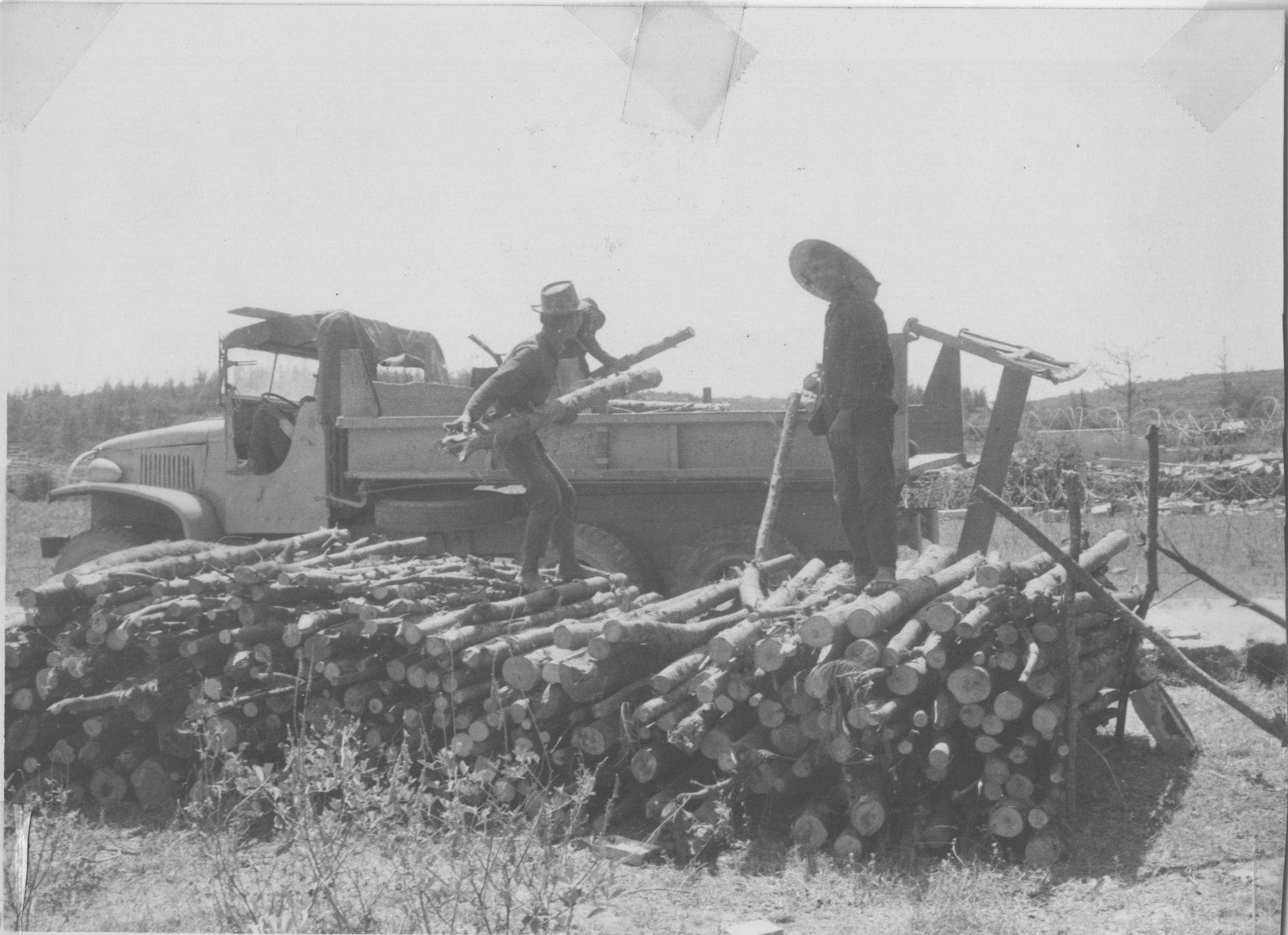 CHU LAI (Americal IO)--Vietnamese men load small logs onto an ancient dump truck just outside the village of Van Thien. The wood was taken from an area that the 26 Eng. Bn., Americal Division, cleared around the village.