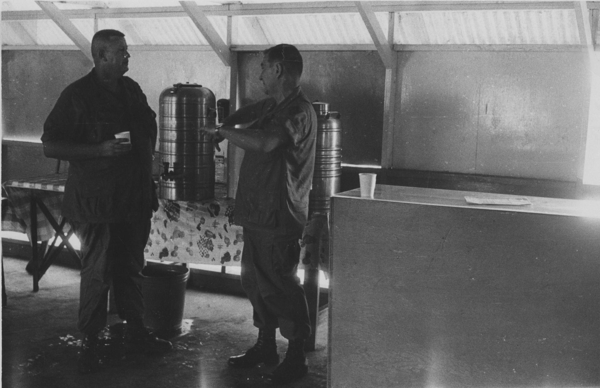 LZ Hawk Hill, Vietnam (Americal IO)--CWO Jack Grainger (Ft. Bragg, Calif.) instructs a 196th Infantry Brigade mess sergeant. Mr. Grainger is the good service director for the Americal Division unit. He tries to visit each brigade mess hall at least once a week.