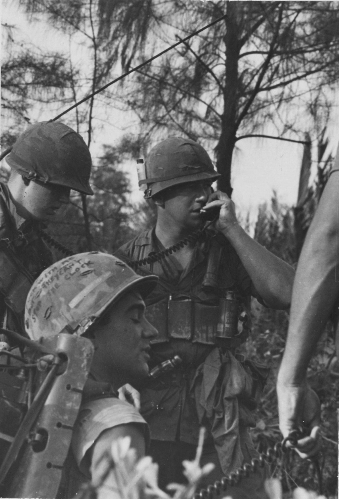 CHU LAI, Vietnam (Americal IO)--CPT Barry Gasdek (Pittsburg, Pa.) a 'Charger' CO from Americal Division's 196th Infantry Brigade calls for artillery in support of a combat assault which entrapped and killed 64 VC in Operation WHEELER/WALLOWA.