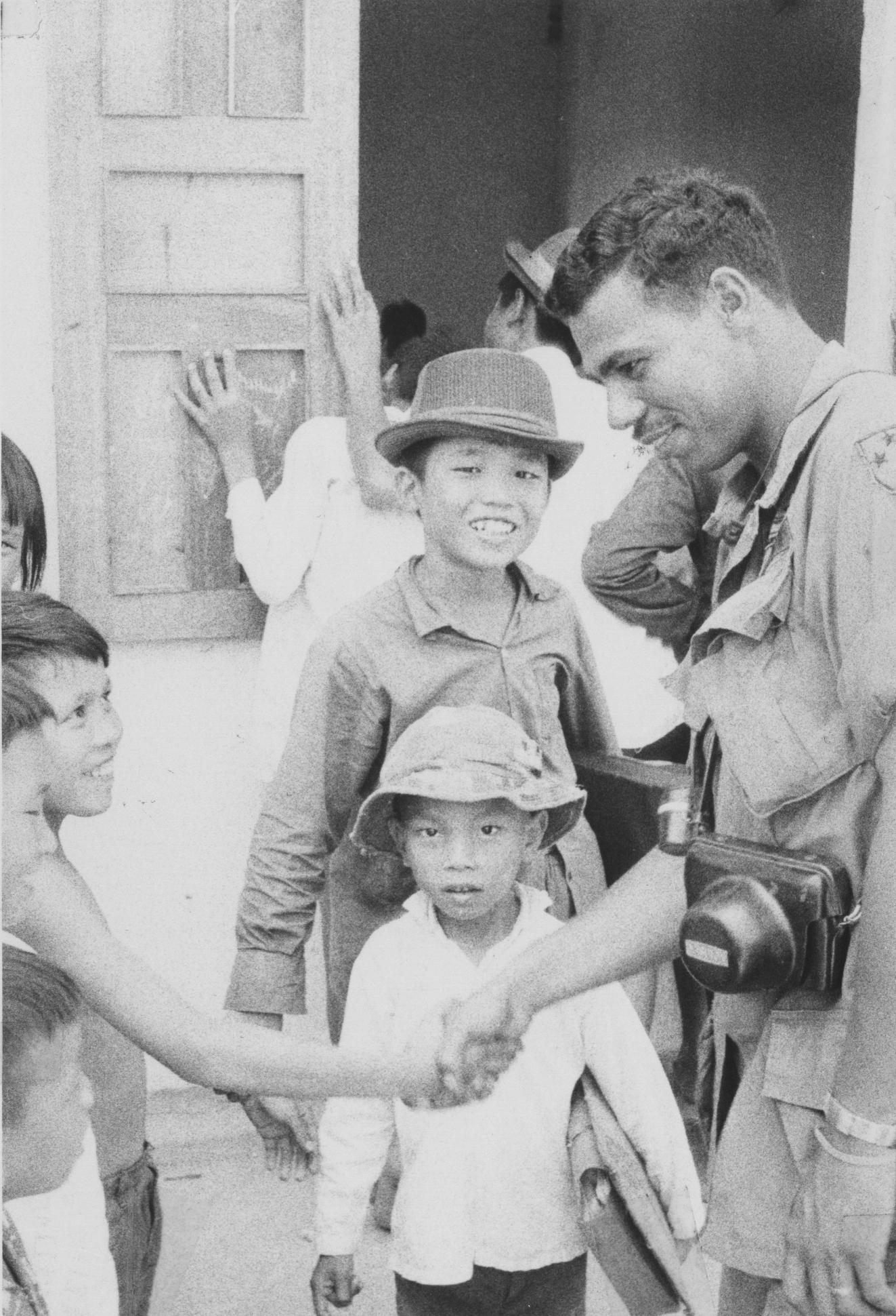FSB HAWK HILL (Americal IO)--Specialist Four H. Weston shakes hands with a new friend. Specialist 4 Weston was on a recent MEDCAP mission sponsored by the 2nd Battalion of the 1st Infantry, 196th Brigade, Americal Division.