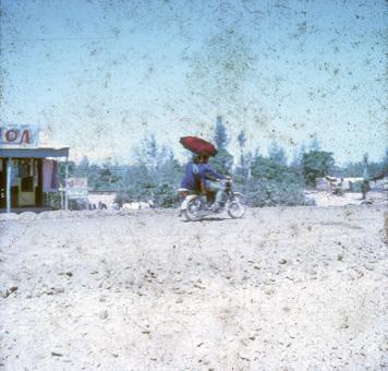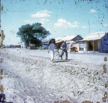 FSB BRONCO (Americal IO)--Private First Class Sanchez steps gingerly through a mud puddle. The 1st Battalion of the 20th Infantry, 11th Brigade Americal Division soldiers were on a search operation south of Chu Lai.