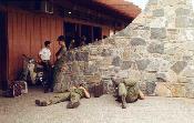 Sgt. Washburn, NCO 1/77 medical platoon, and Medical Specialist Mark Doom on right. Battalion aid station in center background