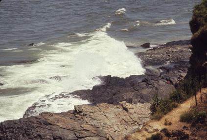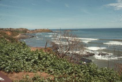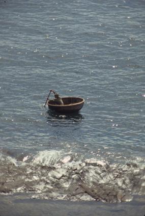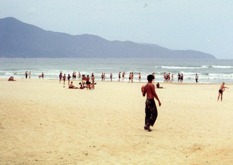 Chu Lai Beach, Vietnam, below 91st Evacuation Hospital, defoliated bushes, concertina wire and vines