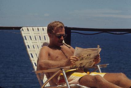 Jim B. Evans print from color slide Charlie 2 Heating shower water