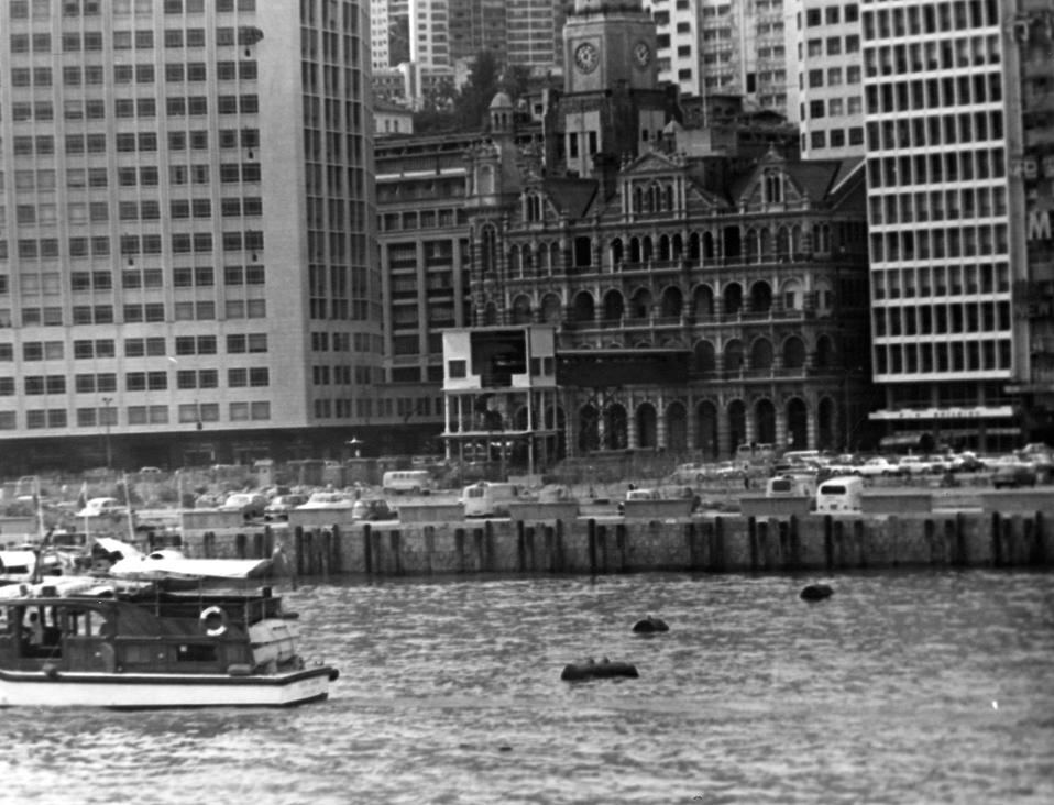 Hong Kong - Kownloon Railroad Station Hong Kong island in the background