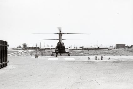 Chinook helicopter on helicopter landing pad 91st Evacuation Hospital Emergency Room