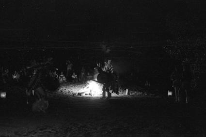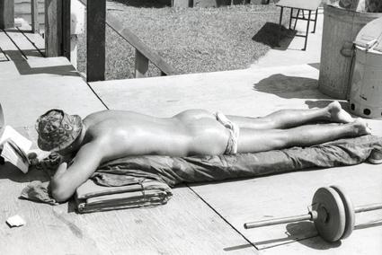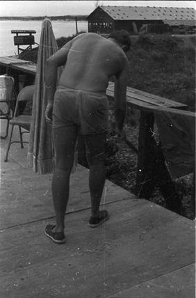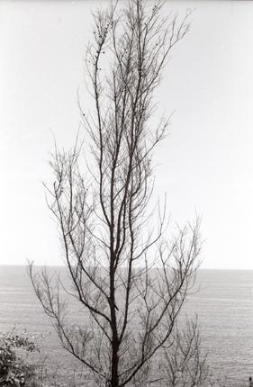 Silhouette of defoliated tree near Boys Camp deck, 91st Evacuation Hospital