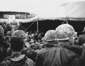 Standing in line for R&R processing, DaNang. At least we were out of those damn green fatigues. Going to Hong Kong from Quang Tri