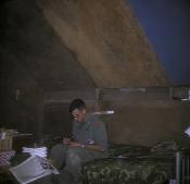 1/77 Armored Battalion Medical Aid Station, Quang Tri Combat Base; 01 December 1969, views made during 1/77 Armored Battalion convoy from Quang Tri Combat Base along QL 1 1st Lt. Paul L. Sauer in hootch adjacent to 1/77 medical aid station. Building was originally built as dental office for Marines.