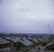 1/77 Armored Battalion Medical Aid Station, Quang Tri Combat Base; 01 December 1969, views made during 1/77 Armored Battalion convoy from Quang Tri Combat Base along QL 1 View toward west from roof from 1/77 Armored battalion medical bunker. Officers' quarters on left and enlisted men on right.