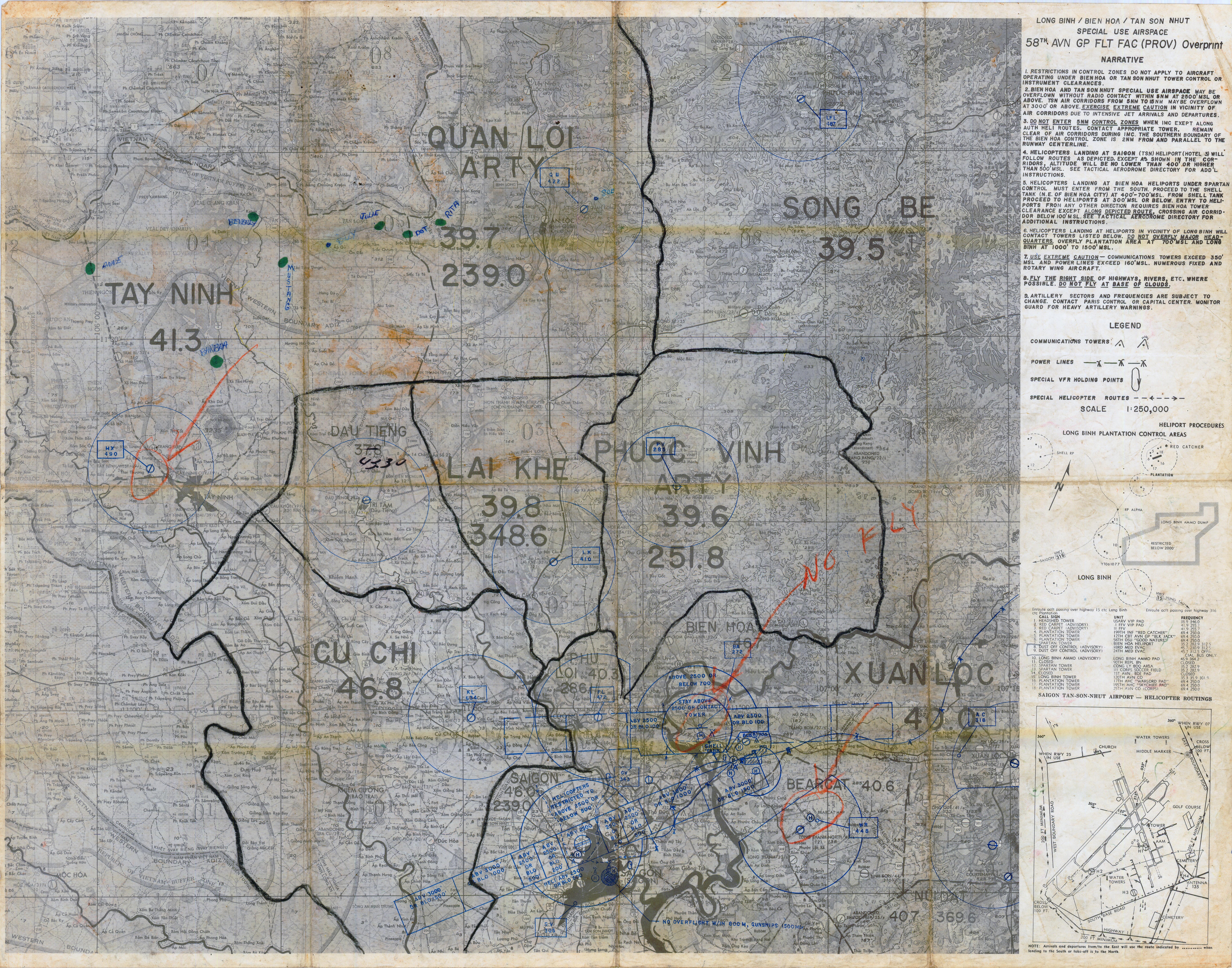 Long Binh / Bien Hoa / Tan Son Nhut Special Use Airspace 58th AVN GP FLT FAC (PROV) Overprint (annotated)
