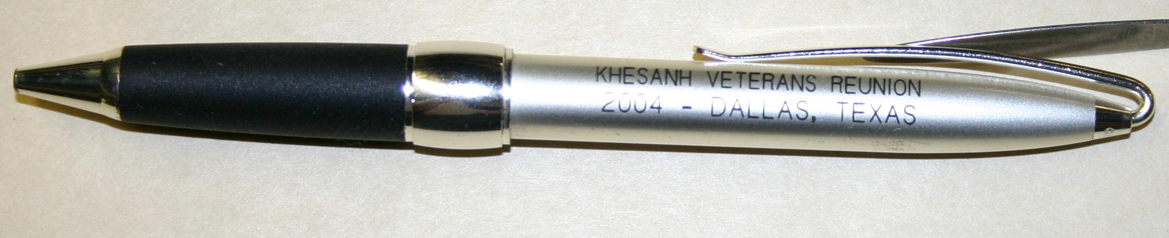 Writing pen 'Khe Sanh Veterans Reunion 2004 - Dallas, Texas' on handle.