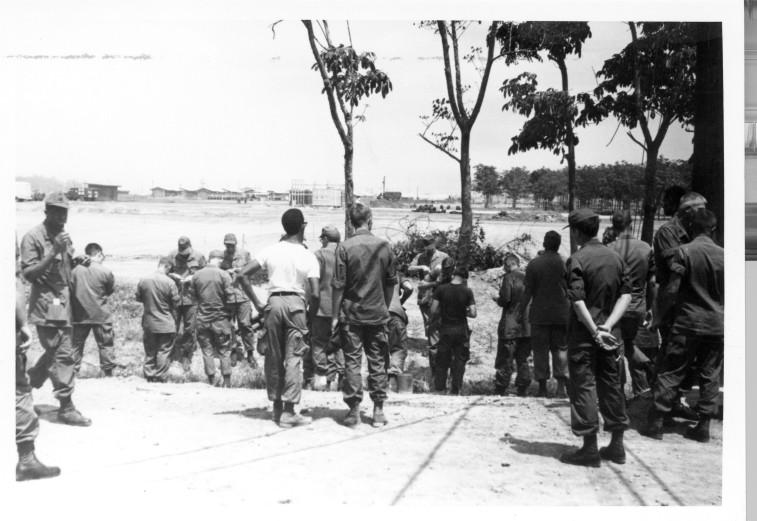 Colonel Glenn West, Beginning of 9th Med Lab on left, Long Binh, moving