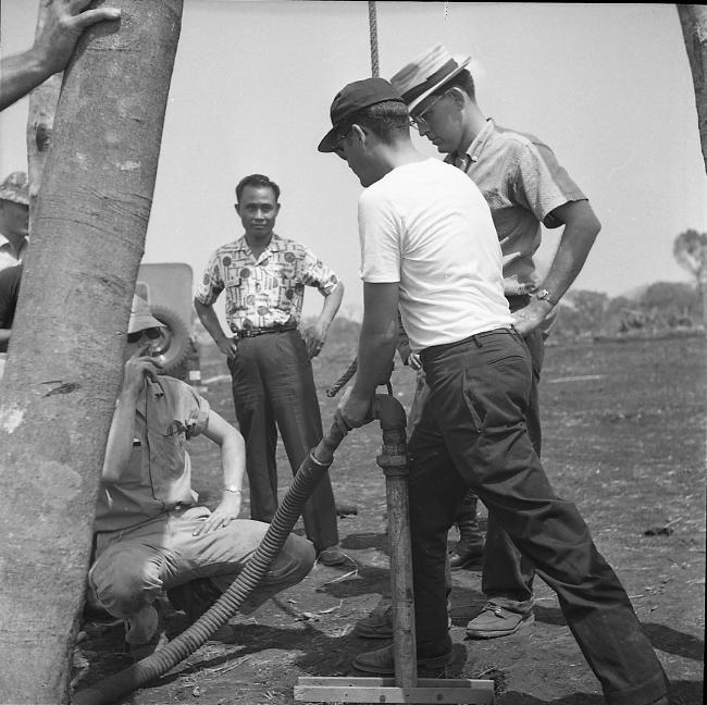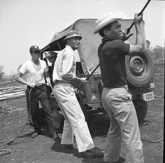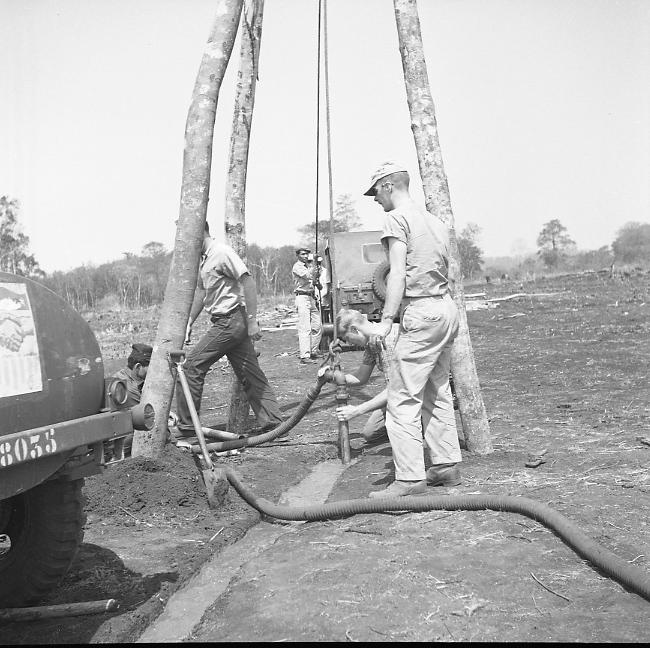 Various pictures from Darlac Province, hamlet openings. Orientation session, Major Brennan, Bob DeBineius, Earl Rhine R.A., Captain Tuyen