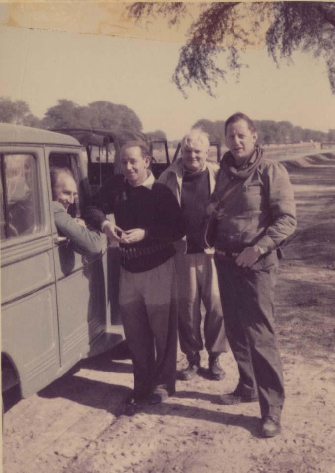 Left to Right: Neil Lothian (in car), Peter Sell (?), (?), Bry. T. Newton