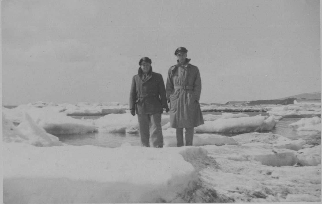 Lue Moseley, captain, Kee Harrison, co-pilot, New Foundland (en route Europe), Goose Bay (?), Gauder(?)